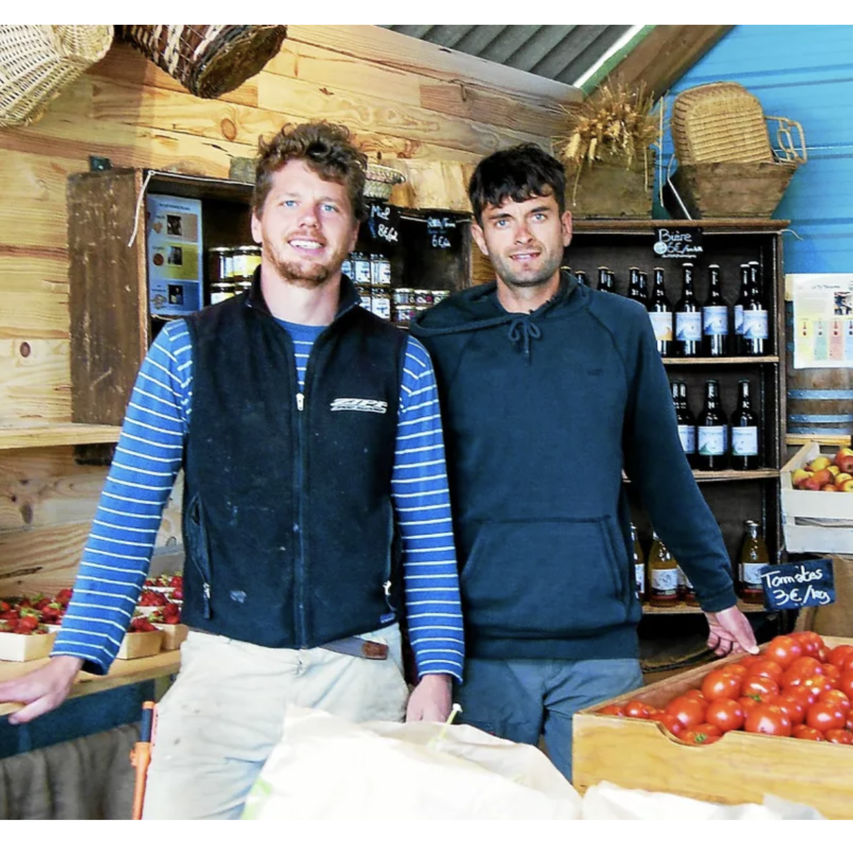 Bonjour, nous sommes Flo et PJ, les deux jeunes maraîchers de la micro ferme TYLEGUMES dans le bourg de Plouguiel.