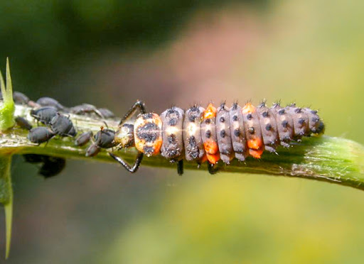 La larve de coccinelle est capable d’engloutir entre 100 et 150 pucerons par jour !