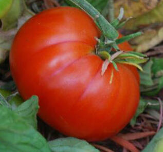 La référence gustative en tomate côtelée. Fruit plat rouge intense, à collet vert, très côtelée, de bonne tenue après récolte. Poids moyen 190 à 250 grammes. Chair juteuse et savoureuse.
